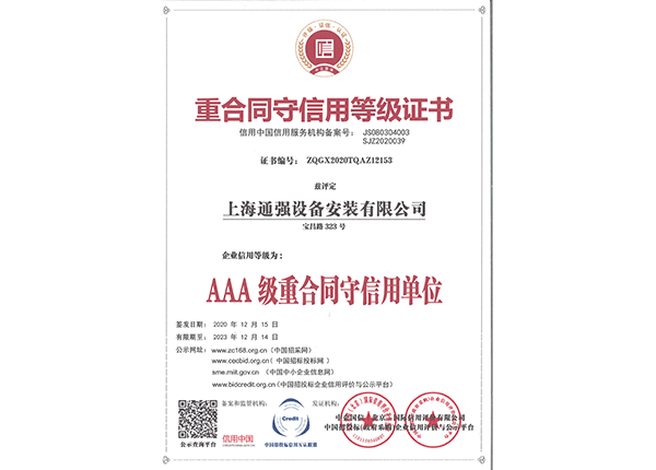 上海通強(qiáng)設(shè)備安裝有限公司注冊(cè)資金2000萬(wàn)元,資產(chǎn)總量為100000萬(wàn)元的專業(yè)設(shè)備安裝公司,公司專業(yè)從事工業(yè)與民用建筑的設(shè)備安裝、非標(biāo)設(shè)備的制作、鋼結(jié)構(gòu)制作安裝、中央空調(diào)系統(tǒng)的安裝,水電及管道的安裝。經(jīng)過(guò)20多年艱苦創(chuàng)業(yè)現(xiàn)已成為一個(gè)具有國(guó)家二級(jí)安裝資質(zhì),獲得上海市“重合同,守信用”的施工單位。